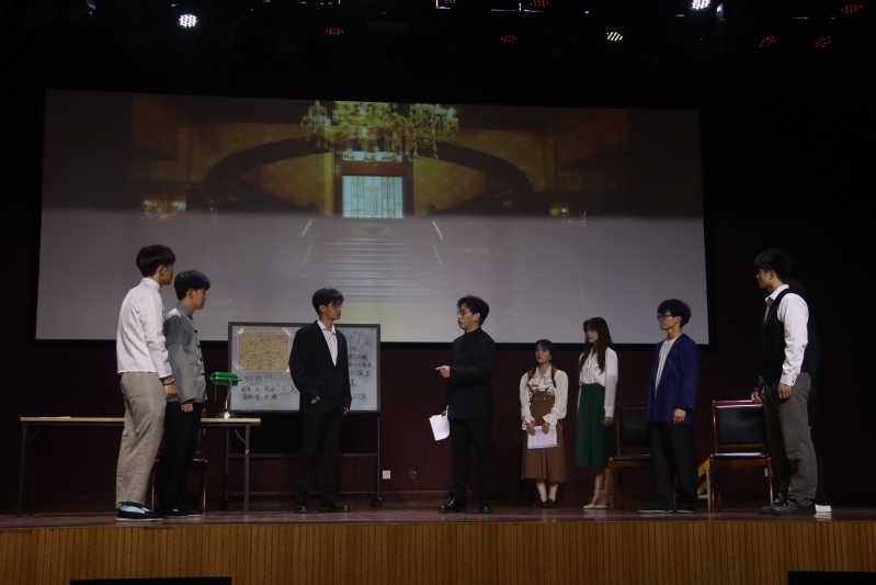 《远航》分为“启航·风云激荡开先河”“领航·追江赶海奠基业”“远航·长风破浪向深蓝”三幕,以“中国船舶工业之父”卢作孚和香港招商局起义领导者董华民两位历史人物为主线,跨越了从抗战烽火到新中国成立的历史时空。舞台上,硝烟弥漫的宜昌码头,卢作孚冒着敌机轰炸的危险,指挥40个日夜的大撤退,那句“千千万万血肉之躯,绝不为奴!”震撼全场;昏暗的桐油灯下,董华民郑重写下誓言,“为创建一个新中国,流血、牺牲,当自我辈始!”字字千钧。从维多利亚港的惊天起义到13艘轮船冲破重重阻碍的壮丽归航,287天的艰难斗争在舞台上波澜壮阔地展现。船夫号子响彻江面,轮船汽笛悠扬回荡,青年学子们用饱满的热情、精湛的演技和真挚的情感将两代航运人的家国情怀诠释得淋漓尽致。当剧中展现从南极科考“雪龙2”号到亚丁湾护航编队,从辽宁号航母到“一带一路”远洋货轮上的海院师生身影时,全场爆发出经久不息的掌声。