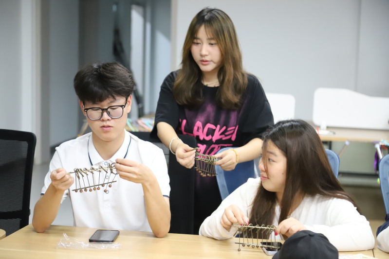 在老师的指导下,同学们近距离观察九连环的结构,感叹铁环与环杆的精妙组合,大家忍不住跃跃欲试,纷纷挑战“第一环”,现场气氛火热,欢笑声与金属叮当声交织成夜校最动听的音符。在一次次尝试与练习中,越来越多同学掌握了节奏和要领,圆满破解九连环。现场设置的挑战环节激发了大家参与的热情,“九连环速解大赛”更是紧张激烈,把指尖上的非遗技艺“锁”进大家的青春记忆。