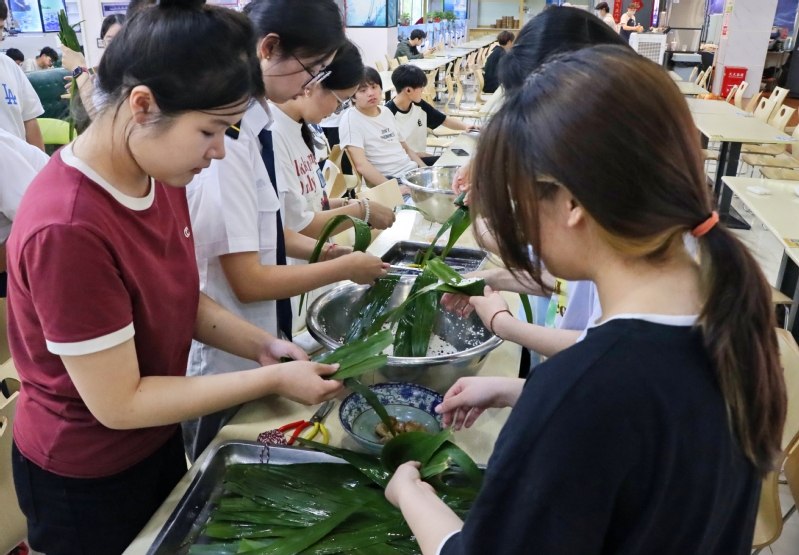 活动伊始,餐厅工作人员为大家准备好了新鲜的粽叶、优质的糯米、红豆、蜜枣等各式馅料,以及精心挑选的马莲草。“首先要选择两片大小合适的粽叶,然后这样折成漏斗状……”在老师的细心指导下,同学们开始了包粽子的尝试。看似简单的动作,实际操作起来却颇有挑战。掌握基本技巧后,同学们开始发挥创意,尝试包出不同形状和口味的粽子。不少同学还特意包了几个不同口味的粽子,准备带回宿舍与舍友分享。
