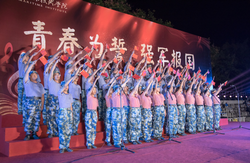 经济管理学院以《强军战歌》和《爱我中华》开启竞演,铿锵有力的旋律点燃全场激情;轮机与电气工程学院的《我爱这蓝色海洋》展现了海洋强国的宏伟蓝图;信息工程学院用《人民军队忠于党》表达坚定信念,《我爱你中国》唱出赤子之情;船舶与智能制造学院、航海技术学院不约而同选择《当那一天来临》,展现了新时代青年随时准备为国效力的决心。国防教育学院选择了经典抗战歌曲《弹起我心爱的土琵琶》,以及新时代强军主题曲《强军有我》,实现了革命传统与时代精神的完美融合;邮轮与艺术设计学院的《接过雷锋的枪》让雷锋精神在新时代焕发新的光彩;创新创业学院以《祖国不会忘记》致敬无名英雄,用《走向复兴》唱响民族复兴的时代强音。全体新生身着整齐的军训服装,歌声时而雄壮激昂,时而深情婉转,将军人的铁血柔情和青年学子的家国情怀演绎得淋漓尽致。
